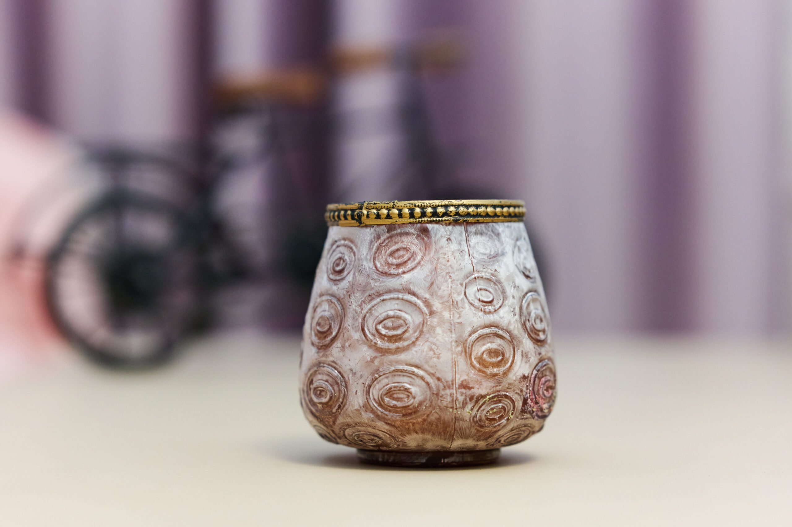 Lumânare parfumată din ceară soia naturală, editie limitata:. Vasul ceramic are un design artistic, cu texturi sculptate și detalii care îi dau aspectul unei mici statuete decorative. Este solid, expresiv și are un caracter aparte, perfect pentru cei care iubesc obiectele unice.
