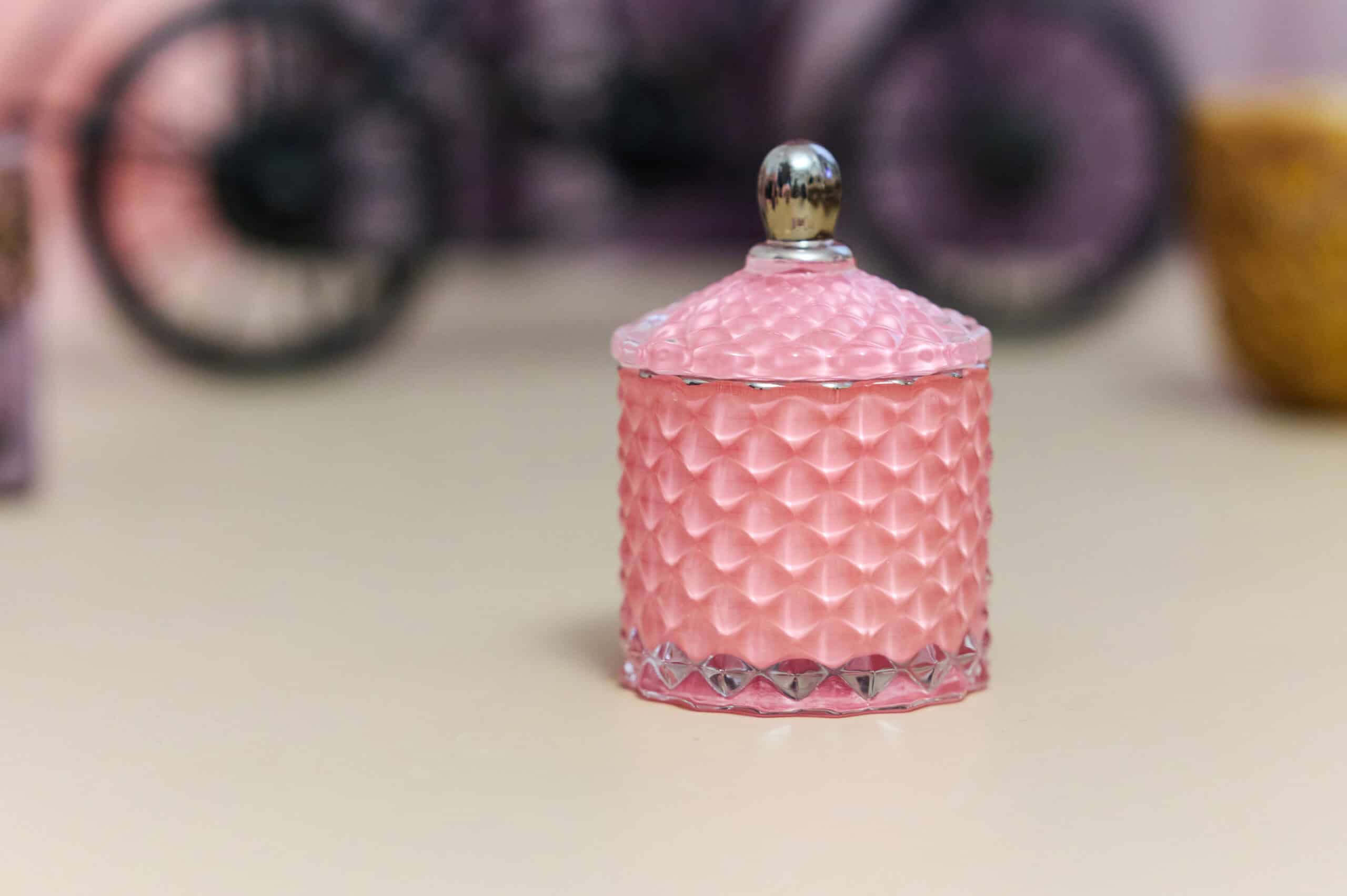 – Design rafinat: Recipient roz, în formă de bombonieră, ideal pentru decor.